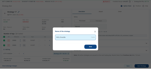 - You can rename your strategy as per your preference (e.g., "Nifty Straddle").