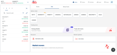 - Log in to the Kotak Neo app and web.