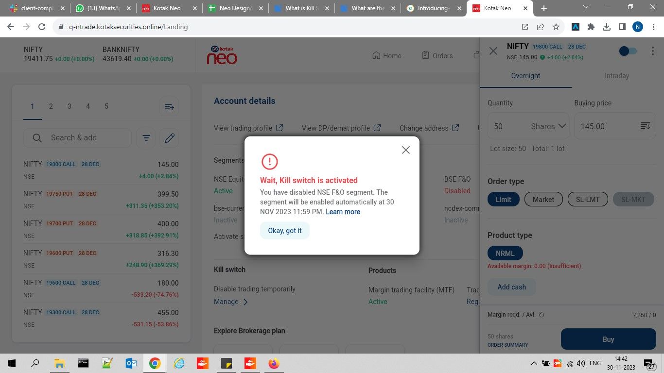 Introducing Kill Switch on Kotak Neo.