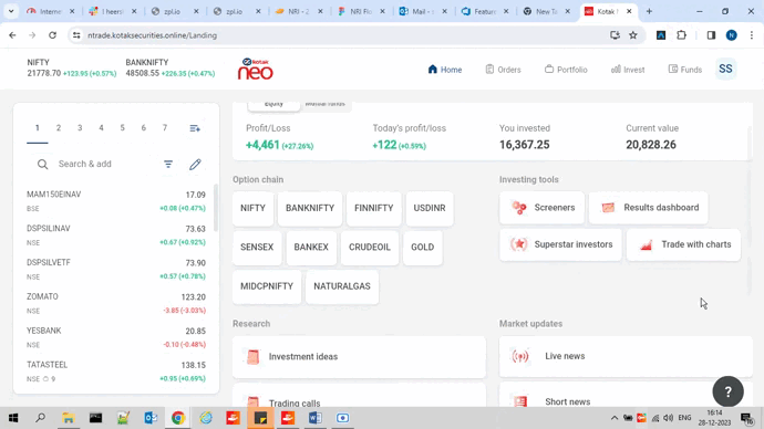 We will be coming up with shortcuts keys on Watchlist and Search.