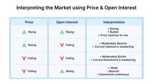 OI डेरिवेटिव बाजारों के लिए बहुत महत्वपूर्ण है। एक बढ़ता हुआ OI दर्शाता है कि नई स्थितियाँ खोली जा रही हैं। यह एक मजबूत रुझान का संकेत देता है। हालांकि, एक गिरता हुआ OI यह दर्शाता है कि व्यापारी स्थितियाँ बंद कर रहे हैं। इसलिए, रुझान अपनी गति खो रहा है।