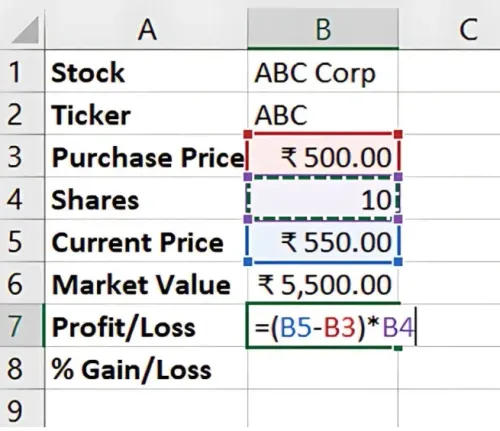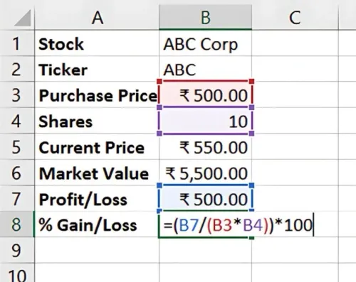 स्टेप 4: % गेन/लॉस (Gain/Loss) कैलकुलेट करें