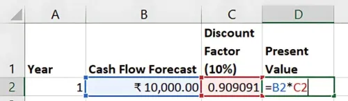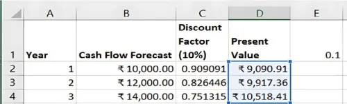 स्टेप 3: कैश फ्लो का प्रेजेंट वैल्यू (present value) कैलकुलेट करें