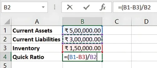 स्टेप 2: क्विक रेशियो फॉर्मूला लागू करें