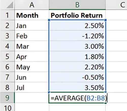 =AVERAGE(पोर्टफोलियो रिटर्न रेंज)