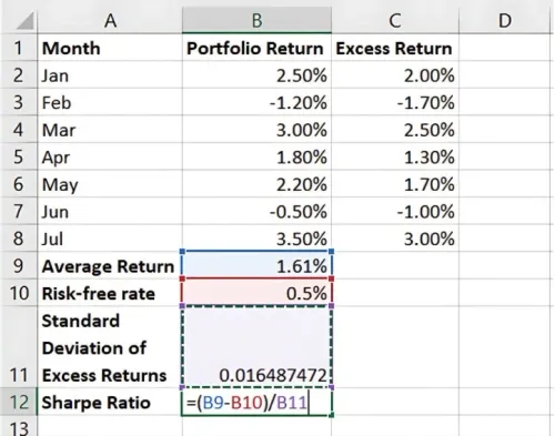 एक्सेल में शार्प रेशियो की गणना के लिए स्टेप-बाय-स्टेप गाइड