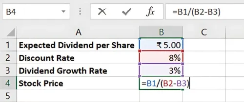 DDM से Excel में स्टॉक प्राइस की गणना करने की स्टेप-बाय-स्टेप गाइड