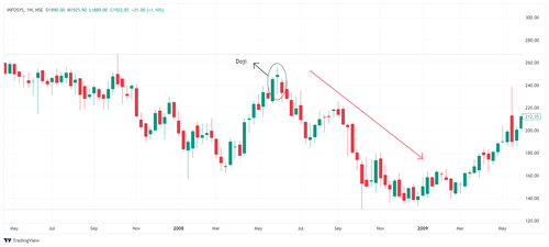 Example: डोजी इन इन्फोसिस (Doji in Infosys)