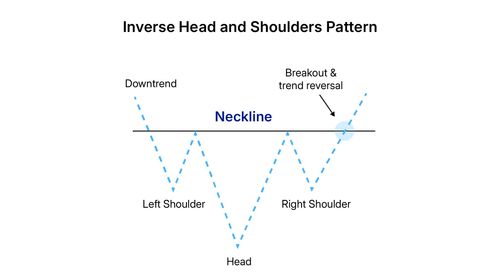 मान लीजिए Tata Motors कई महीनों से डाउनट्रेंड में है। स्टॉक एक इनवर्स हेड एंड शोल्डर्स (Inverse Head and Shoulders) पैटर्न बनाता है, जिसमें तीन गर्त होते हैं: लेफ्ट शोल्डर, हेड (सबसे निचला बिंदु), और राइट शोल्डर। जब प्राइस नेकलाइन के ऊपर टूटता है, तो यह बुलिश रिवर्सल की पुष्टि करता है। यह ट्रेडर्स के लिए स्टॉक खरीदने का संकेत होगा, इस उम्मीद में कि जब डाउनट्रेंड रिवर्स होगा तो प्राइस बढ़ेगी।