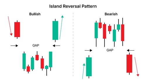 आइलैंड रिवर्सल पैटर्न (island reversal pattern) एक मजबूत रिवर्सल सिग्नल (strong reversal signal) है जो कीमत में एक गैप के बाद बनता है, चाहे वह ऊपर की ओर हो या नीचे की ओर। यह तब होता है जब कीमत एक दिशा में गैप के साथ खुलती है, कुछ दिनों या हफ्तों के लिए समेकित होती है, और फिर विपरीत दिशा में गैप करती है, एक "आइलैंड" बनाते हुए जो चार्ट के बाकी हिस्सों से अलग होता है।