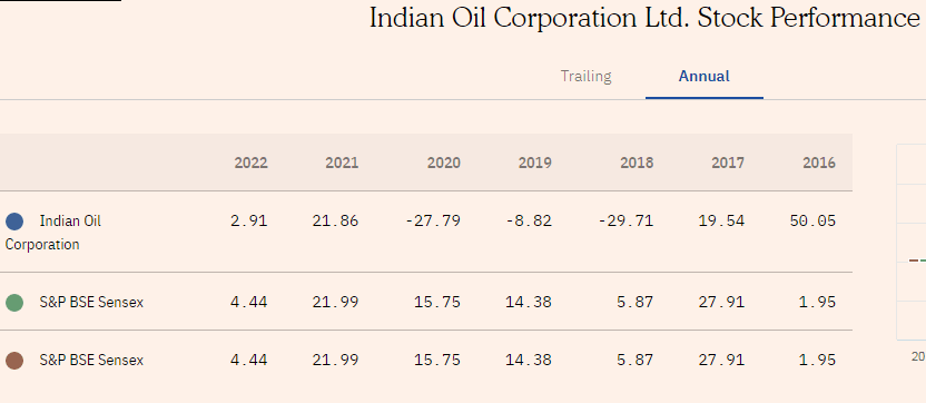 From Kashmir to Kanyakumari, from Kutch to Kibithu in Arunachal Pradesh, Indian Oil Corporation binds all. Be it petrol or gas cylinders, IOC finds a place in our homes. Synonymous with the fuel that keeps India moving, it has a PAN India presence. Though annual returns from IOC’s stocks were a little muted in 2022, it delivered a stellar performance in 2021.