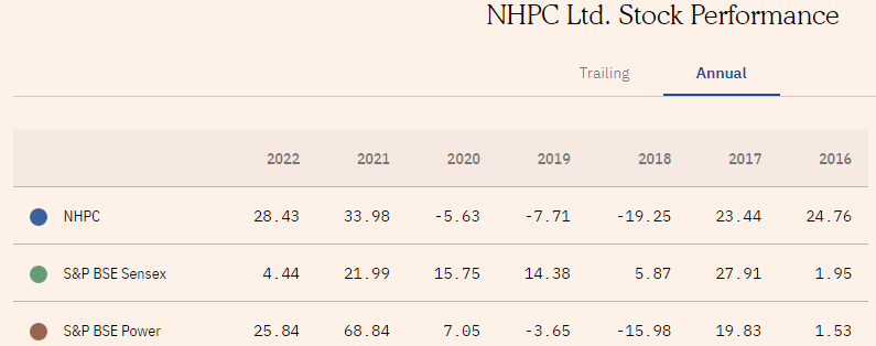 Annual returns from NHPC Ltd stocks in 2022 stood at 28.43%.