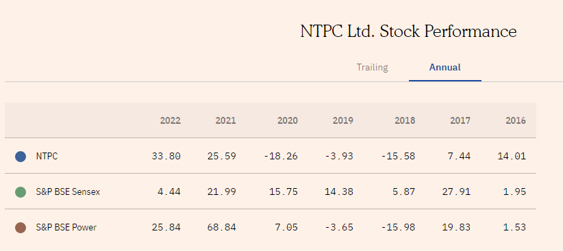 Bringing cheers to the faces of millions by providing uninterrupted and affordable power, NTPC Ltd has not only maintained its status as a key player in the Indian power industry. Over the years, NTPC's success has become synonymous with the growth and progress of India's power sector. Annual returns from NTPC Ltd stocks in 2022 stood at 33.80%.