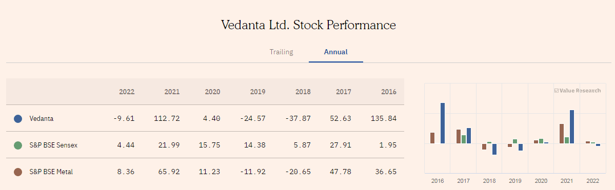 Vedanta Ltd is a prominent Indian multinational mining and metals company that operates in various sectors, including natural resources, oil and gas, and energy. It is involved in the exploration, mining, and production of various natural resources, including iron ore, aluminum, zinc, copper, and lead. Vedanta’s stocks didn’t have a good 2022 as returns were negative (- 9.61%). However, it delivered outstanding returns in 2021 at 112.72% and can bounce back in 2023.