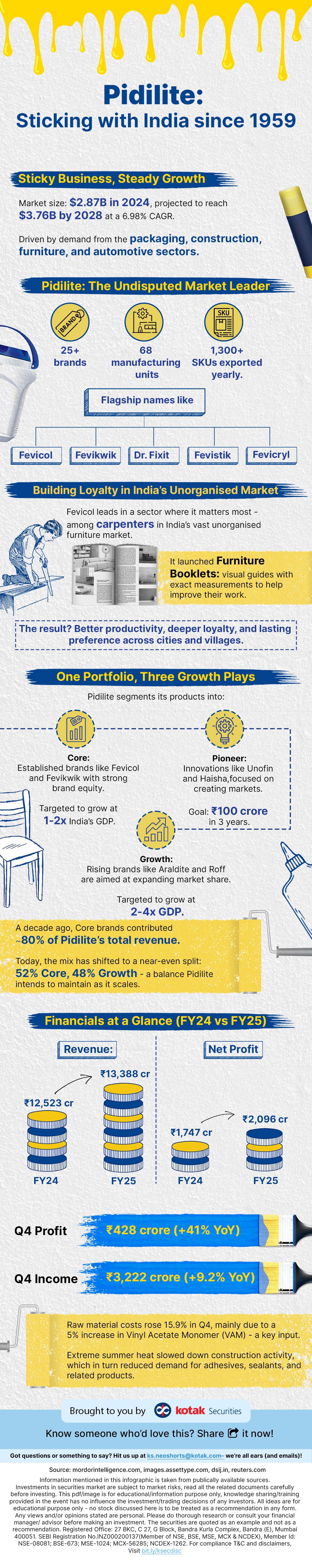 In FY25, Pidilite reported revenue of ₹13,388 crore, a rise from ₹12,523 crore in FY24.