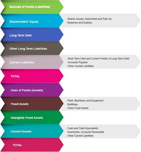 As it can be seen in the pro forma balance sheet below, assets are also referred to as uses of funds, whereas liabilities and equity, together are called sources of funds. Let’s discuss these concepts in greater detail.