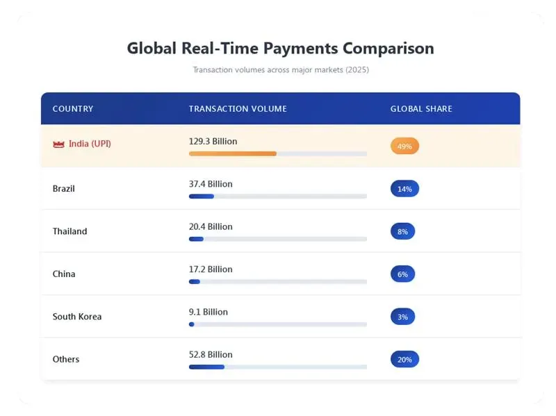 Because UPI now accounts for nearly 49% of all real-time payment transactions globally.