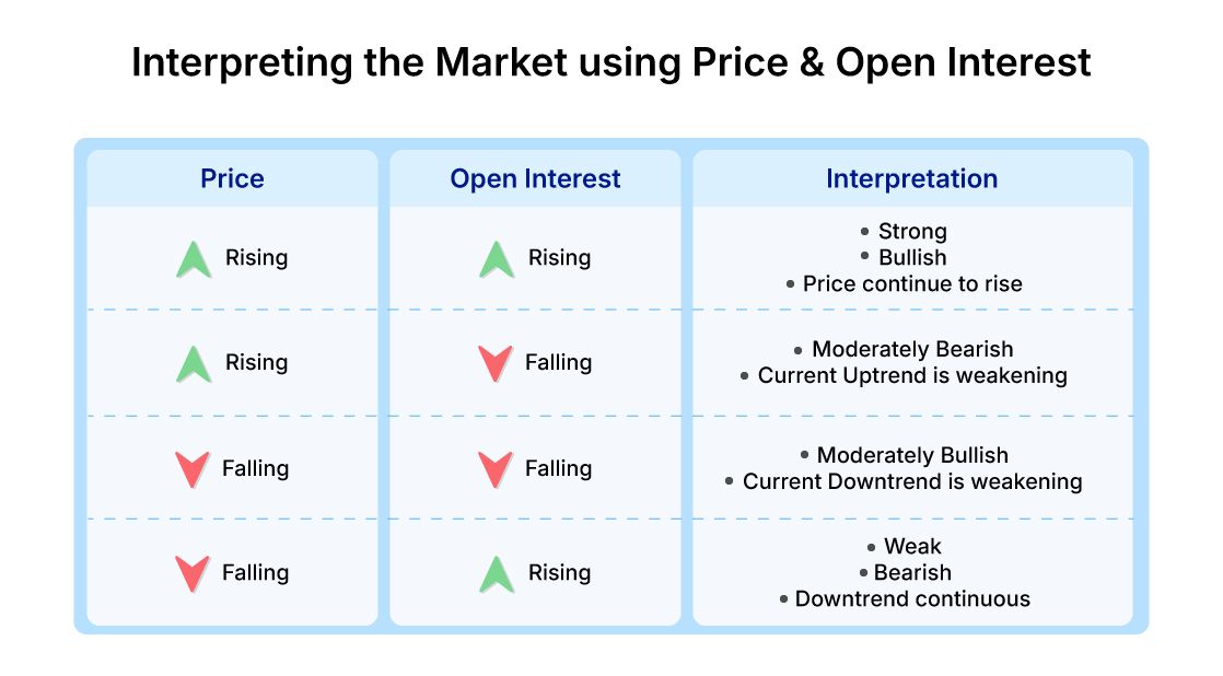 To understand the market trend, traders tend to analyse OI and volumes together. Here's how these two metrics relate: