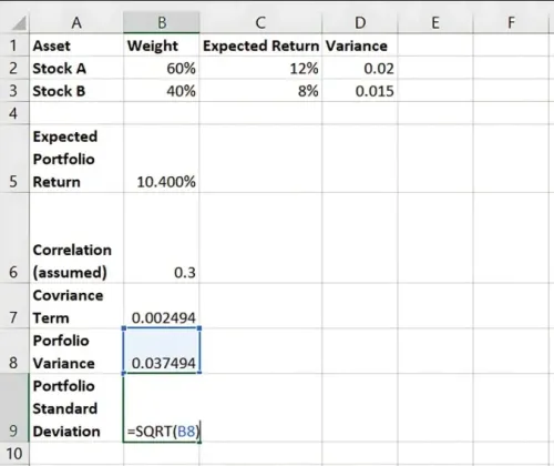 Stock B | 40% | 8% | 0.015 |