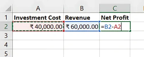 Suppose you invested ₹40,000 in a project, and after one year, it generated ₹60,000 in revenue. The net profit is: