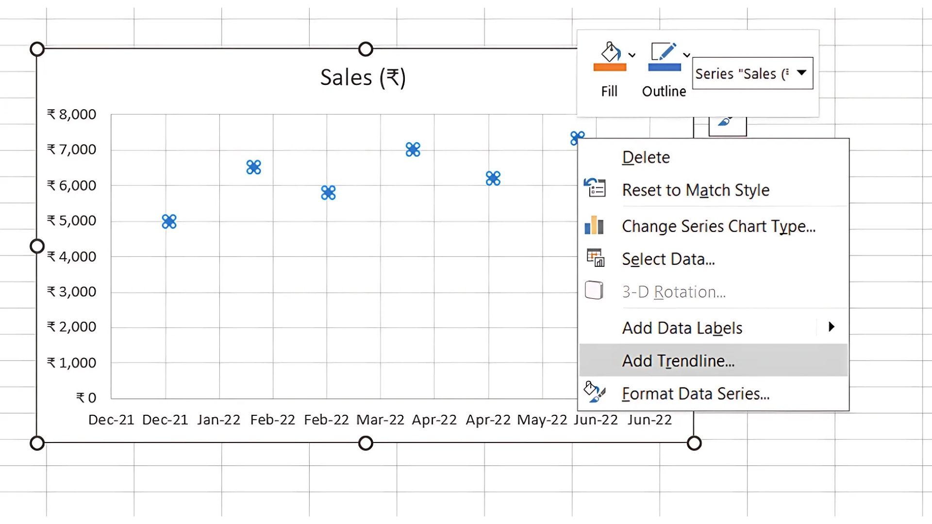 - Right-click on the data points, choose Add Trendline and select Linear