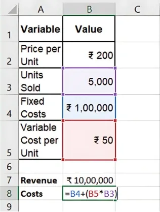 Costs = Fixed Costs + (Variable Costs per Unit × Units Sold)