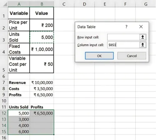 Use Data > What-If Analysis > Data Table and specify Units Sold as the input.