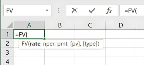 =FV(rate, nper, pmt, [pv], [type])