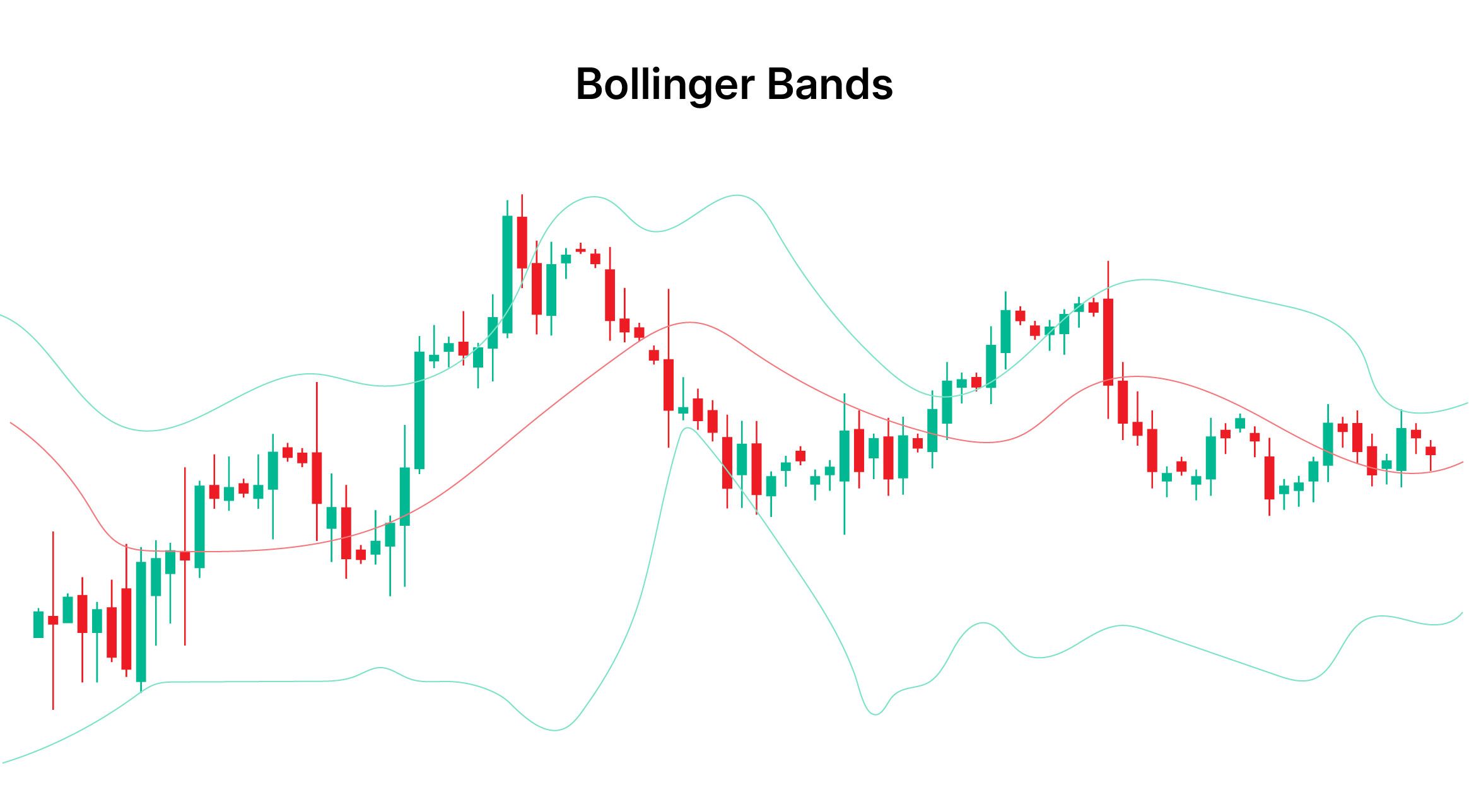 Bollinger Bands consist of a moving average with bands set at two standard deviations above and below the average. A breakout occurs when the price moves outside the upper or lower band, indicating increased volatility and the potential for a strong price movement in the direction of the breakout.