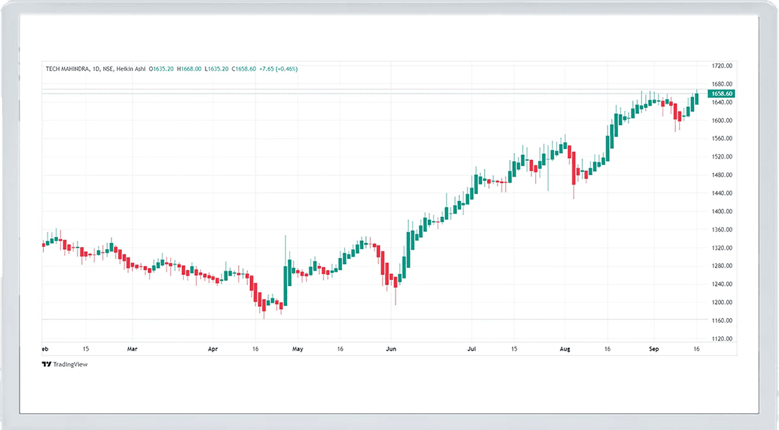 Let’s take HDFC Bank as an example. Suppose the price has been in an uptrend, and Heikin-Ashi Candles shows a series of green candles with no lower wicks. At the same time, the Parabolic SAR is below the price, confirming the uptrend. As the price continues to rise, traders can use the Parabolic SAR dots as a trailing stop-loss, staying in the trade until the Parabolic SAR flips above the price and Heikin-Ashi Candles turn red, signalling a reversal.