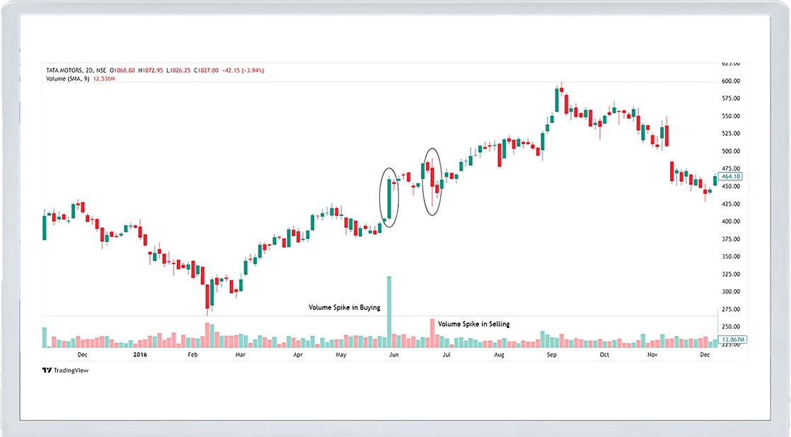 For example, if Tata Motors announces a major partnership, the volume may spike as traders rush to buy the stock, pushing the price higher. Conversely, if a company releases poor earnings results, a volume spike could occur as traders sell off their shares.