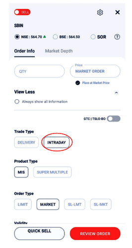 If you wish to do a short sell, you can do so using our two intraday products MIS and Cover Order