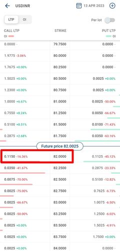 - You will see all the strikes available for the current expiry. Call option strikes are on the left side of the screen and the Put option strikes are on the right side of the screen.