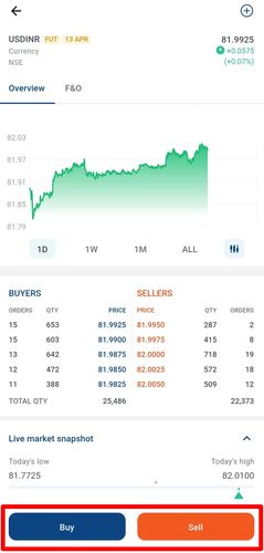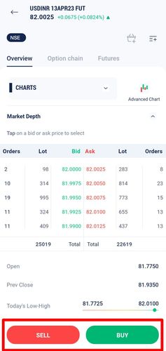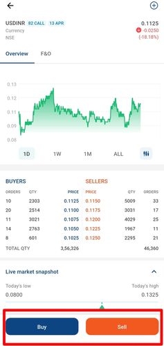 - Once you click on any of the contracts you will see an option to buy/sell the contract on the bottom of the screen.