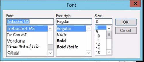 - Select a font style and a font size and click OK.