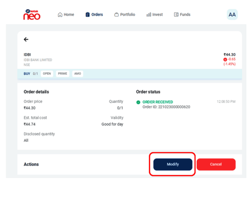 The number of shares field by default shows the quantity that is yet to be executed. You can modify the number of shares as well as price