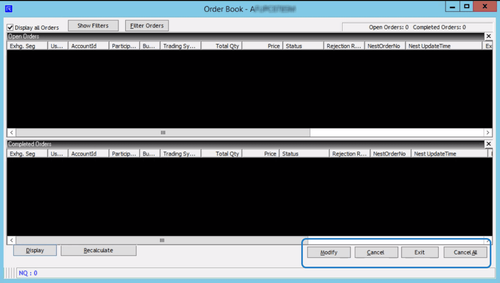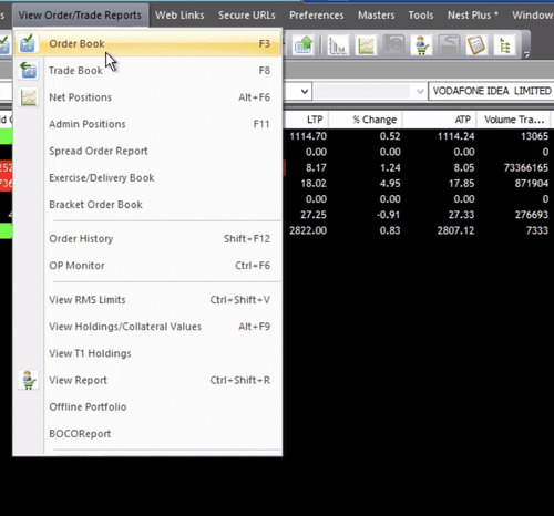 - Click on the modify or cancel options respectively to modify or cancel any open order present in the "Order Book".