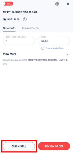 - Once you click on the sell option, fill in the rest of the details i.e. the number of lots and the rate at which you want to sell the contract. Once you fill In all the required details you can click on quick sell and execute the order.
