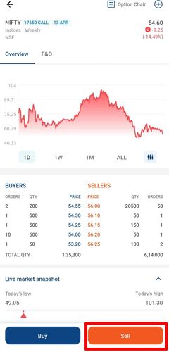 - You have to tap on the contract that you want to trade (NIFTY 18000 CALL 17 NOV) and then you will see an option to sell the contract.