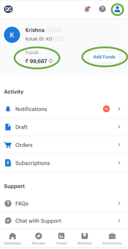 - Go to add funds by clicking on the profile icon