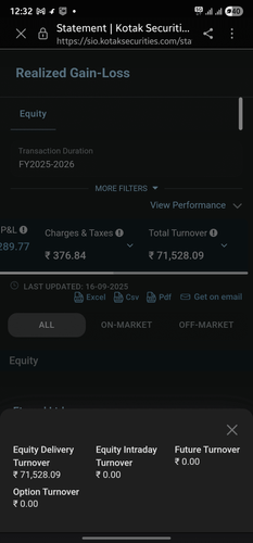 - Check your turnover anytime in Kotak Neo → Reports → Realized Gain-Loss with segment-wise bifurcation.