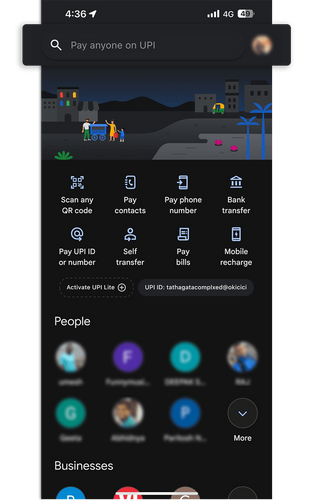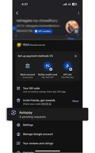 Launch Gpay on your mobile device and tap on your profile picture in the top-right corner of the screen.