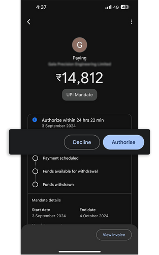 Review the details and authorize the mandate by tapping on the Authorize button.