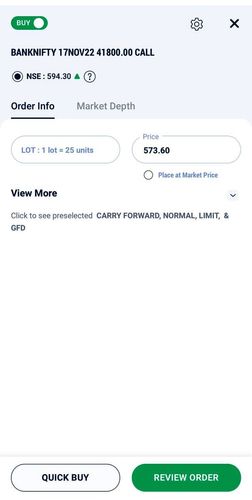 If you click on Quick Buy order will be placed directly. If you click on Review Order you will see a Review Order screen before placing an order.