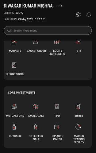 - After logging in, click on Invest from the bottom bar