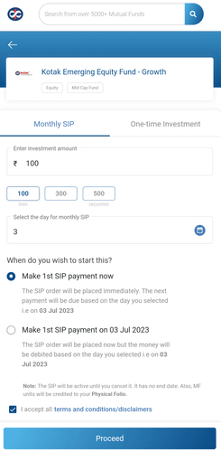 - Under Monthly SIP, enter investment amount and select SIP date