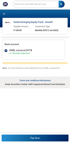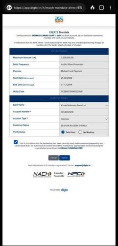 Due to regulatory changes, the following new flow will take effect on April 1, 2022. Check out the digital investment flow by clicking the link below. You should complete mandate before placing any SIP orders.