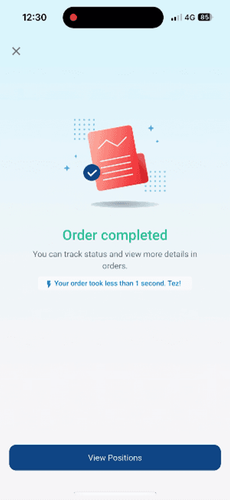 o Order is completed successfully. User can view on View Positions CTA.