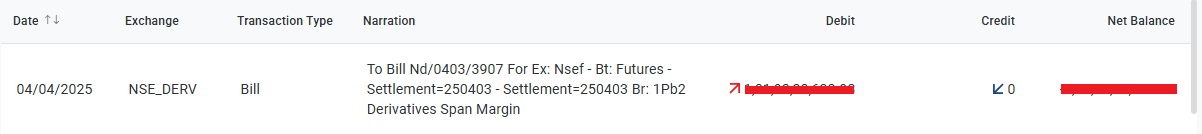 Old Ledger Sample margin entry for trades done on 25th Mar 2025