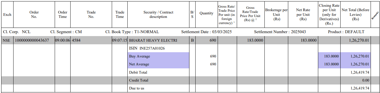 The details in the contract note will be on trade level. Previously, trades were shown as a single entry with an average price; now, each trade is listed separately for better clarity.